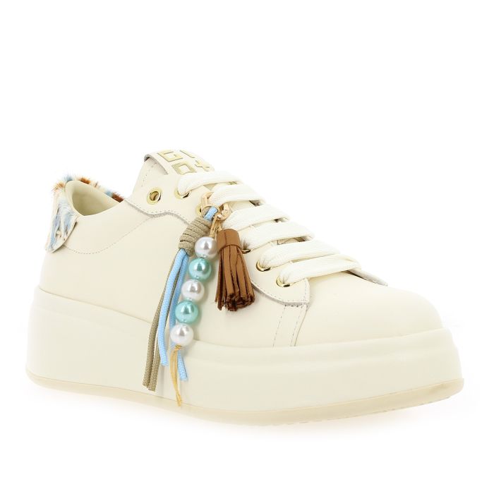 Confectionnées en cuir de veau blanc laiteux avec un empiècement talon en poney.