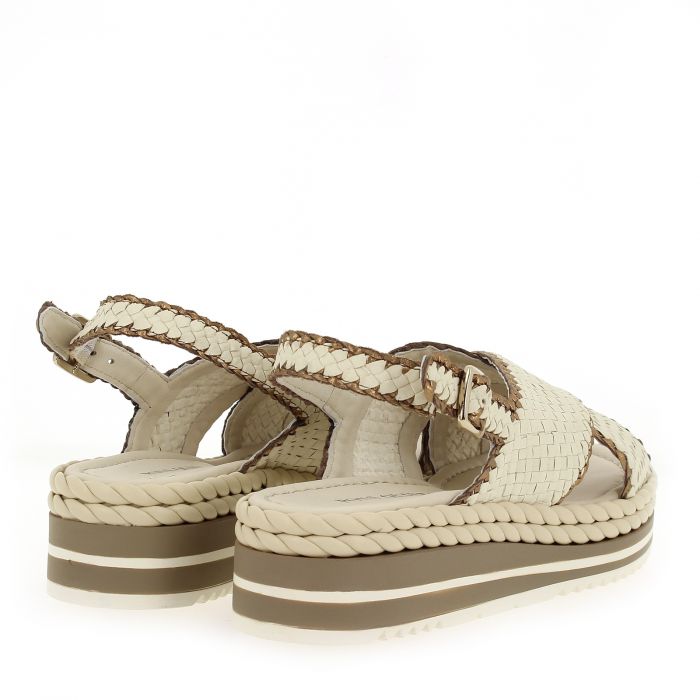 Sandale MILAN à plateforme en cuir tressé à la main blanc/taupe Effet corde tubulaire autour de la plateforme.