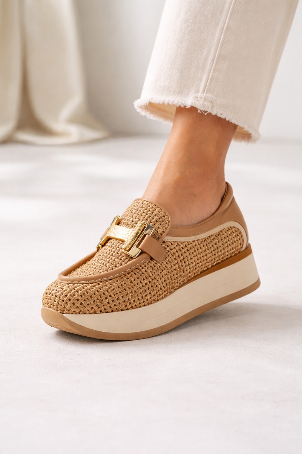 SOFTWAVES CAMILLE RAFFIA NOISETTE ET SON BIJOUX DORE
