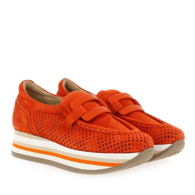 Softwaves CHER Mocassin ultra confortable et tendance en nubuck couleur mandarine .